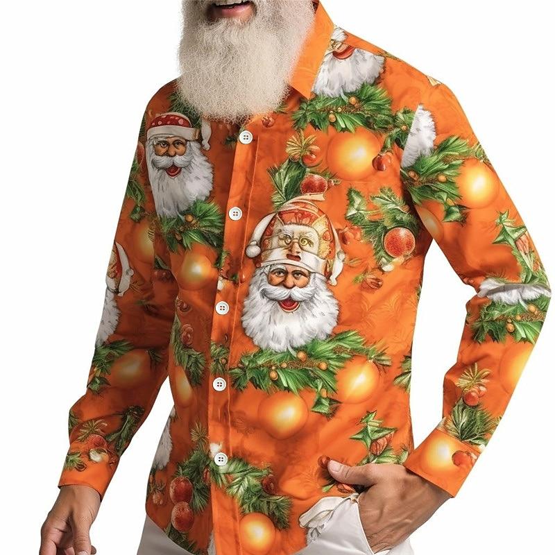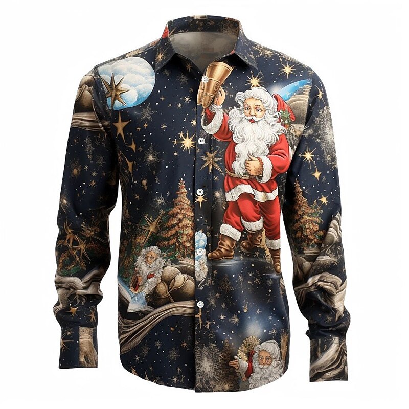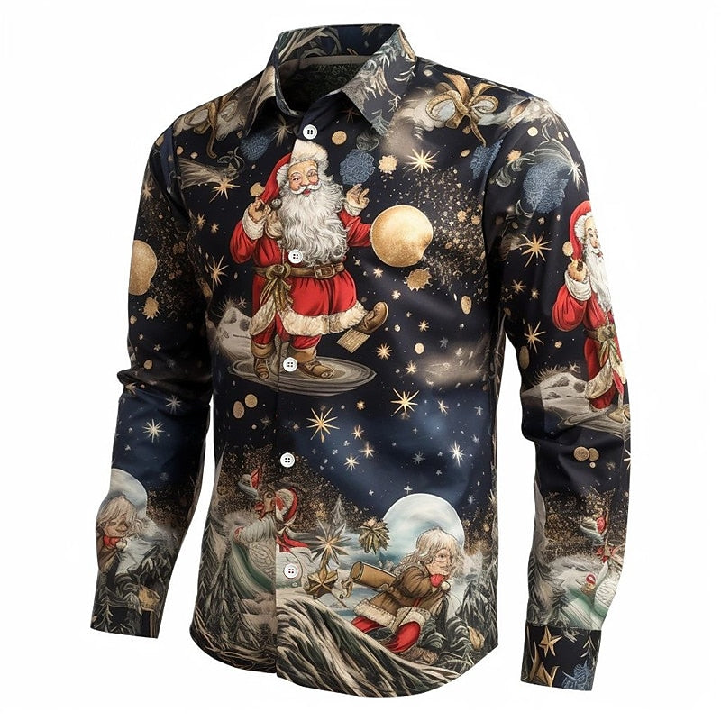 Santa Claus Print Shirt For Christmas Party