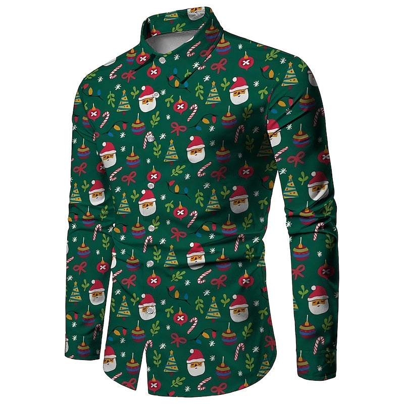 Christmas Santa Print Casual Shirt