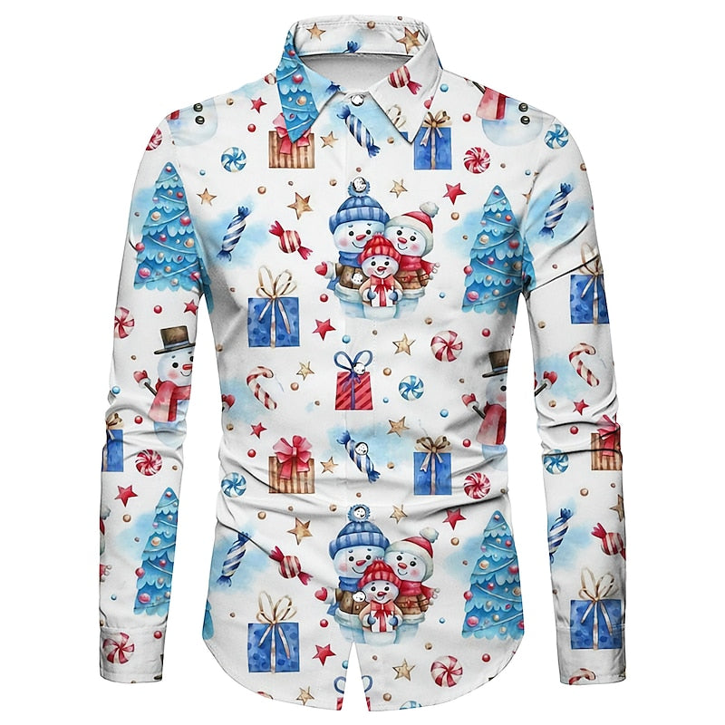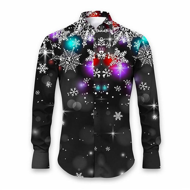 Snowflake Print Party Shirt For Christmas