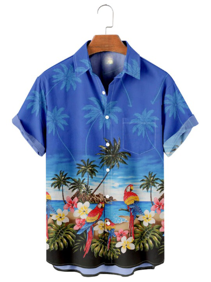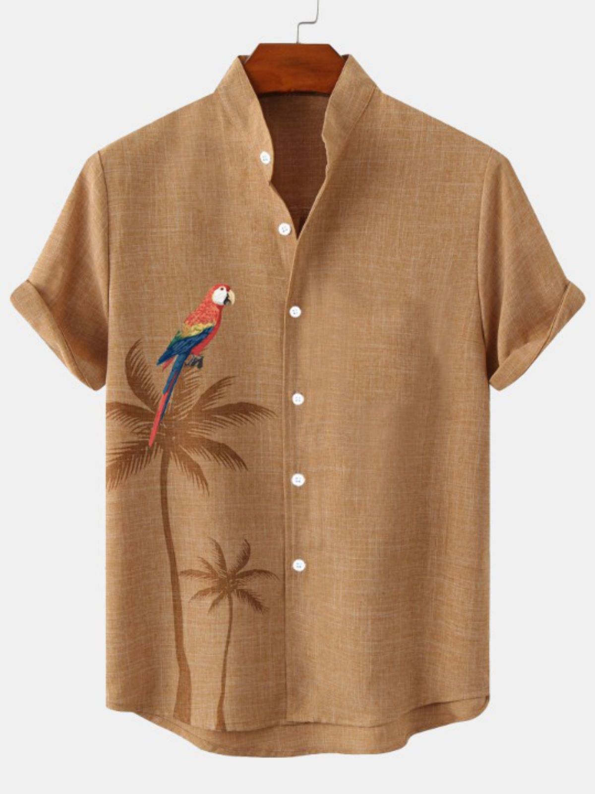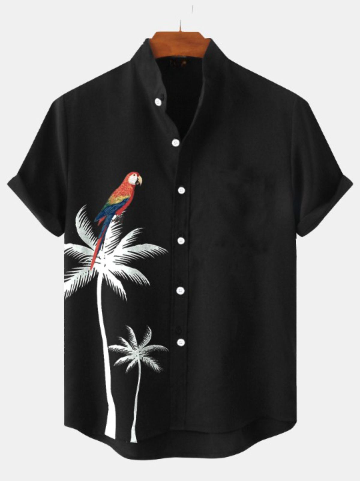 Palm Tree Parrot Print Casual Short Sleeve Shirt