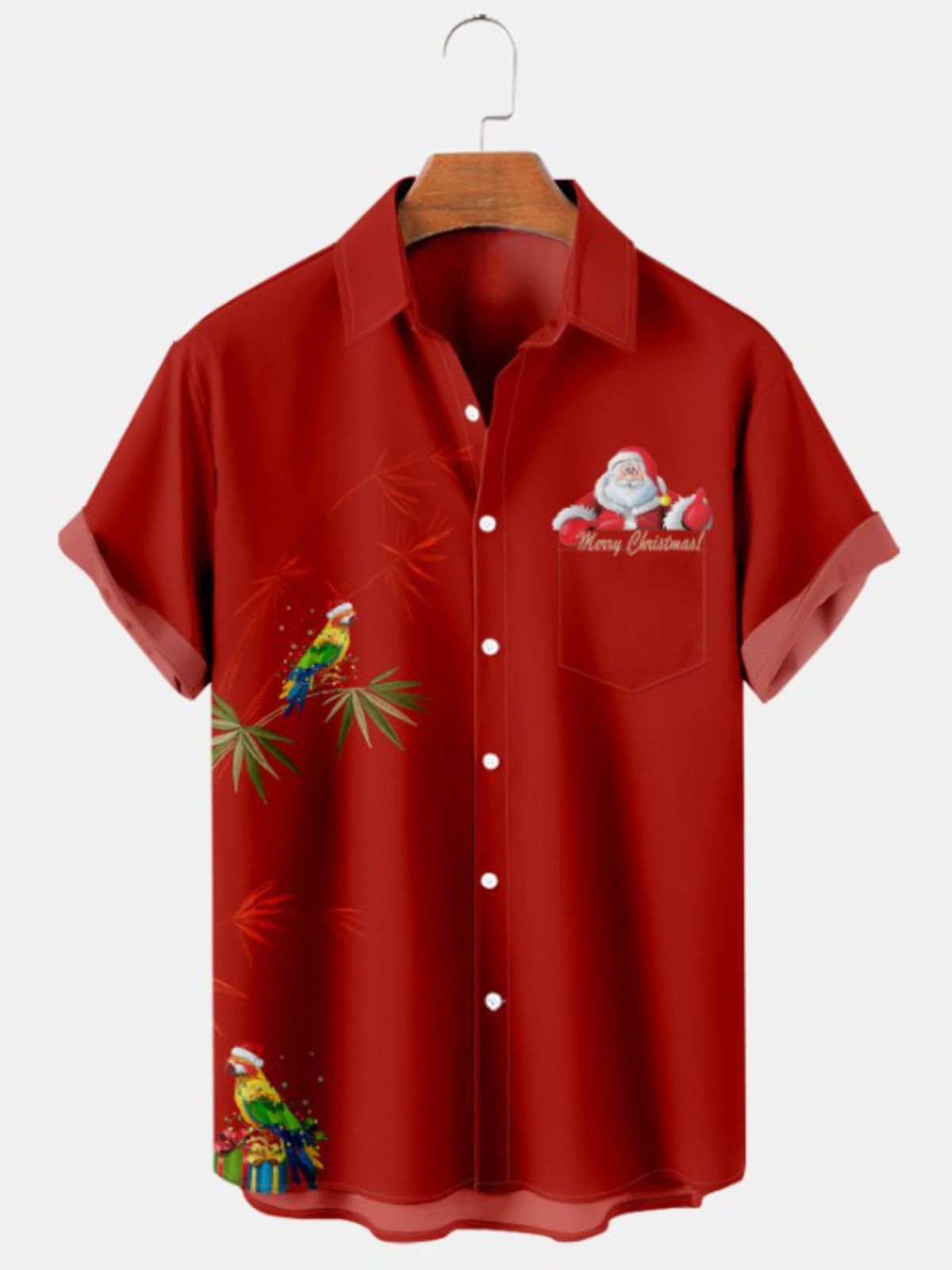 Hawaiian Gradient Print Pocket Short Sleeve Shirt
