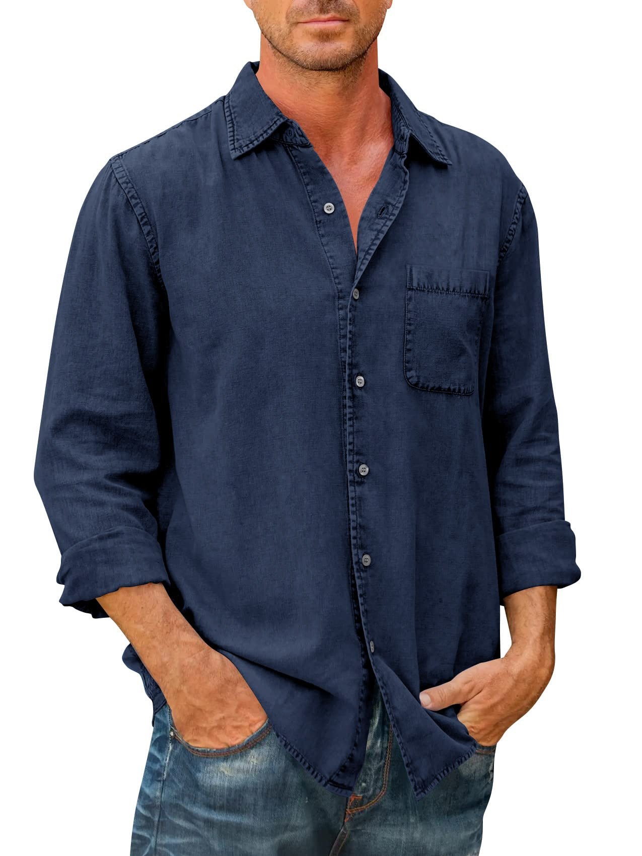 Solid Colored Pocket Cotton Long Sleeve Shirt