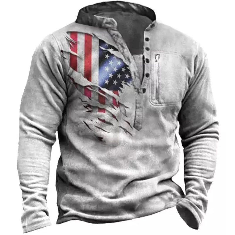 Men's 1776 Patriotic Print Henry Long Sleeve T-Shirt