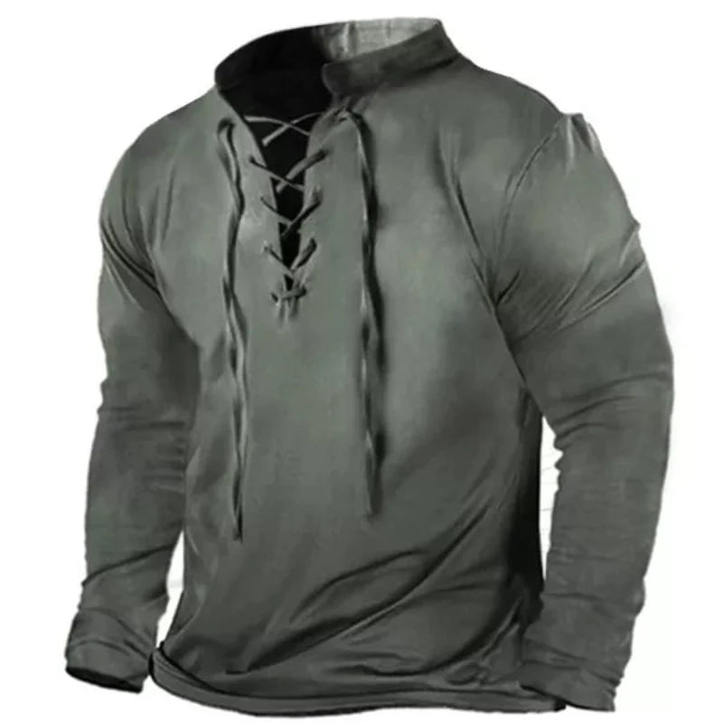 Men Long Sleeve Tie Collar T-Shirt