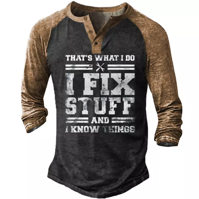Men's Retro Casual Long Sleeve Henley T-Shirt