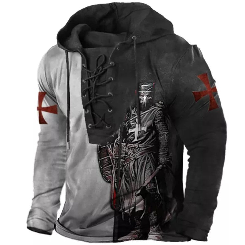 Men's Vintage Tie Long Sleeve Hooded