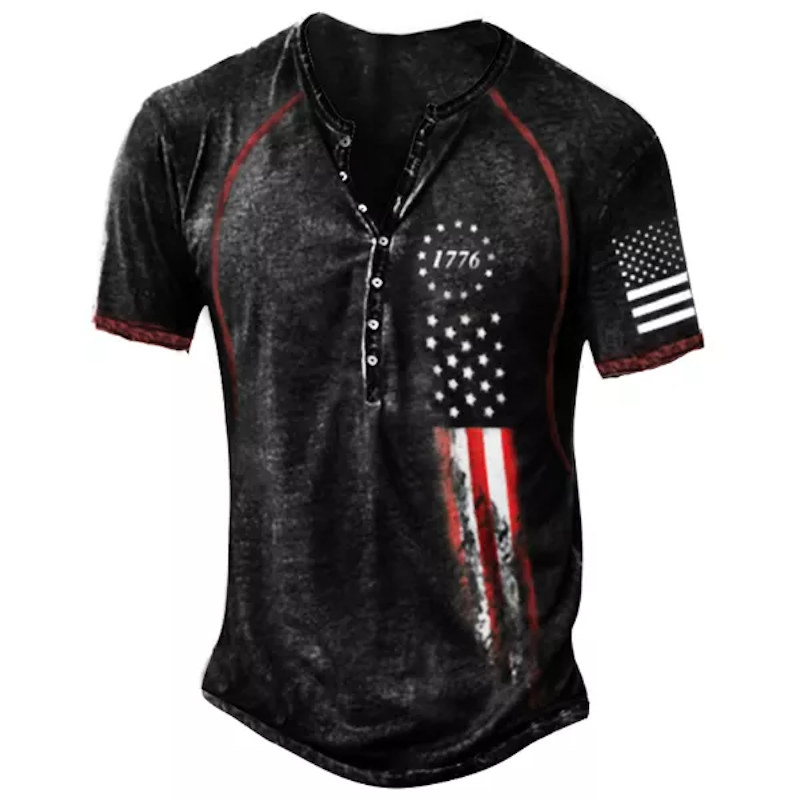 Men's 1776 American Flag Henley Short Sleeve T-Shirt