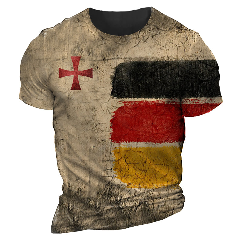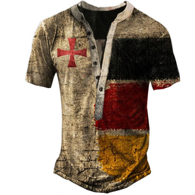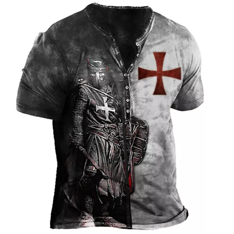 Men's Vintage Templar Cross Henley Collar T-Shirt