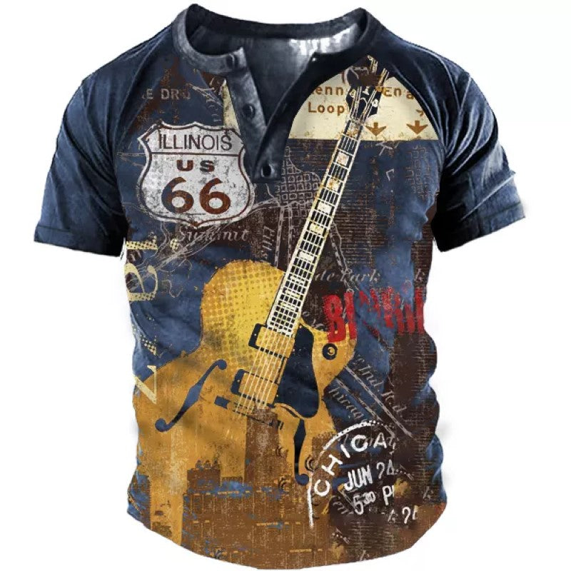 S214 Men's Vintage Outdoor Print Henley T-Shirt