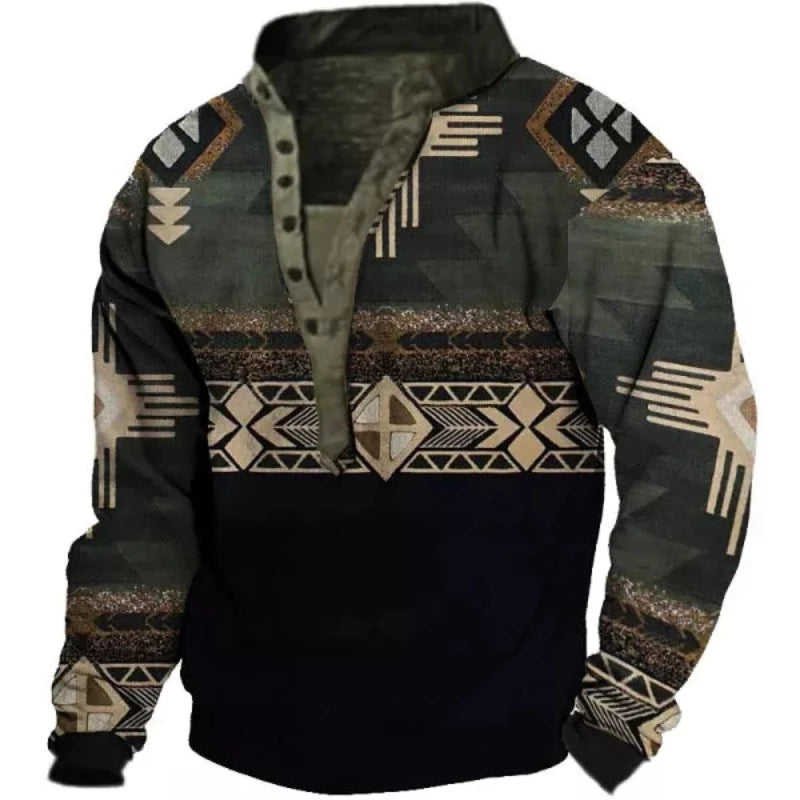 Outdoor Ethnic Print Henley Sweatshirt