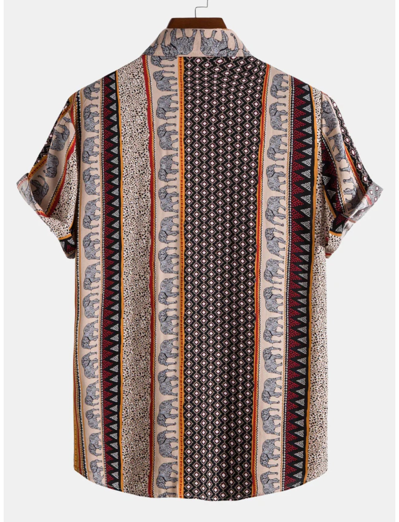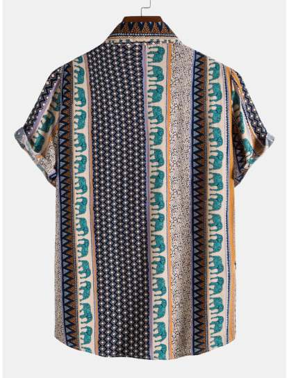 This shirt is perfect for those looking to make a statement with their casual wear. The unique elephant and geometric design sets it apart, ensuring you stand out in any crowd. Ideal for both casual and semi-formal occasions, it pairs well with jeans, shorts, or chinos for a stylish look.