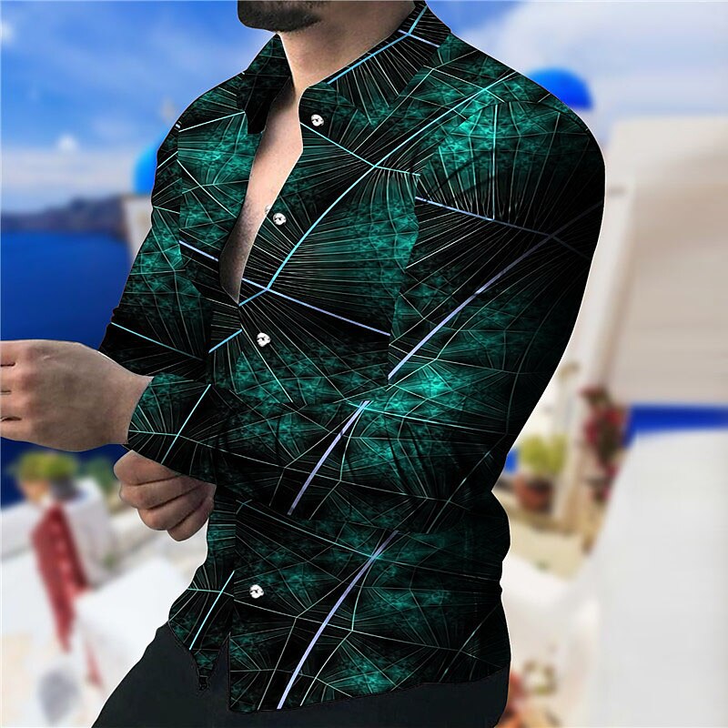 Our Abstract Geometric Line Artwork Print Shirt is a fusion of modern art and fashion. The shirt's design features a complex pattern of geometric lines over a dark backdrop, reminiscent of intricate leaf or digital circuitry. This visually arresting piece is ideal for those who want to stand out in a crowd.