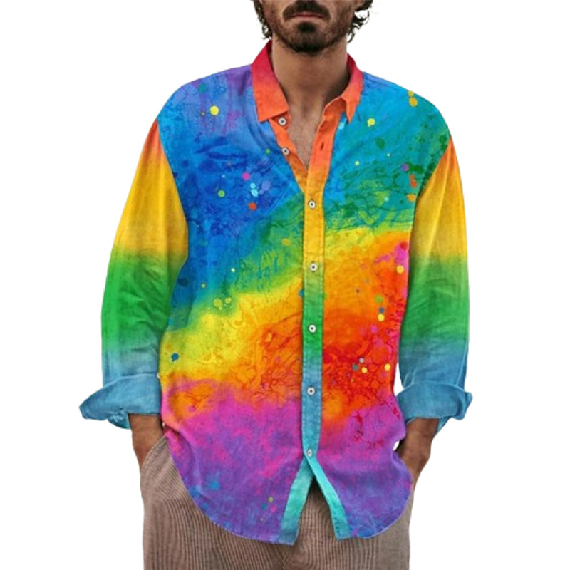Abstract Splash Print Long Sleeve Shirt is an expressive piece featuring an abstract splash print, reminiscent of an artist’s canvas with a riot of vibrant colors. Each hue seamlessly transitions into the next, creating a visual celebration on the fabric. For those who to showcase their artistic flair and brighten up their wardrobe.