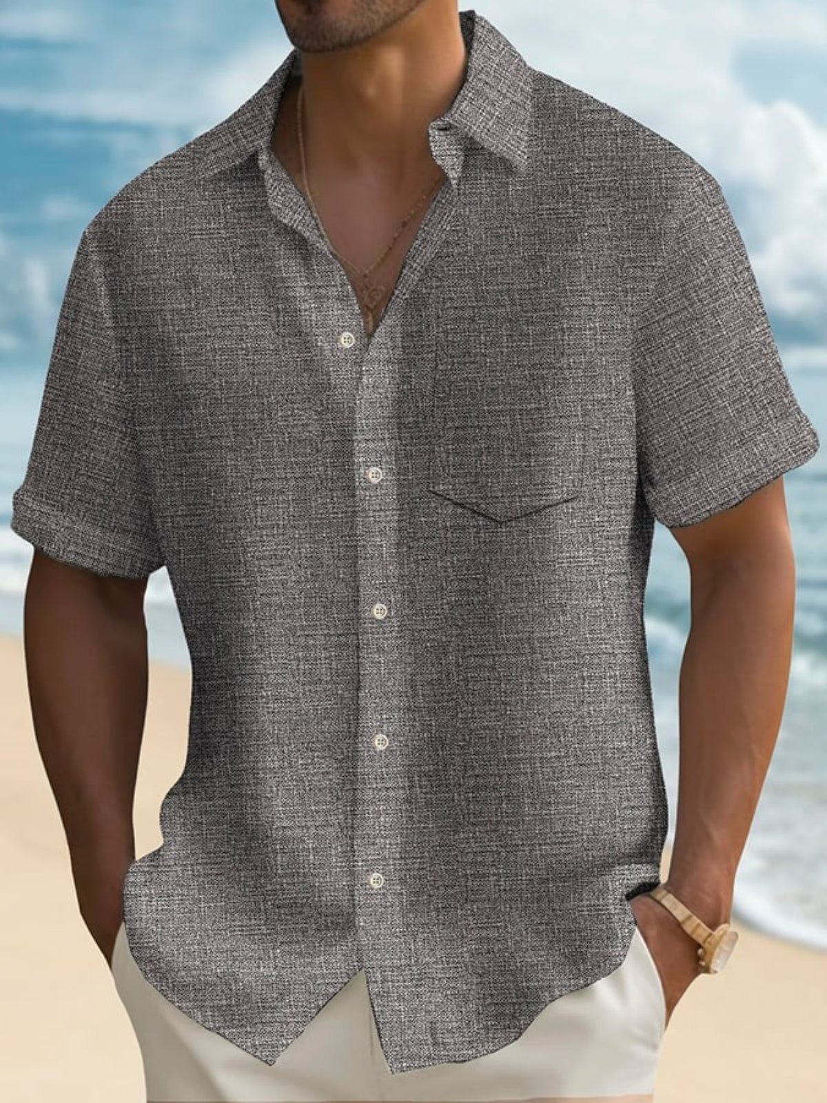 Upgrade your casual look with this abstract textured print shirt, perfect for beach outings or casual gatherings. Featuring short sleeves and a button-down front, this shirt combines comfort and style. The lightweight, porous fabric and convenient pocket add functionality. Pair it with shorts or casual trousers for a versatile, stylish option. Available in multiple sizes to ensure the ideal fit.