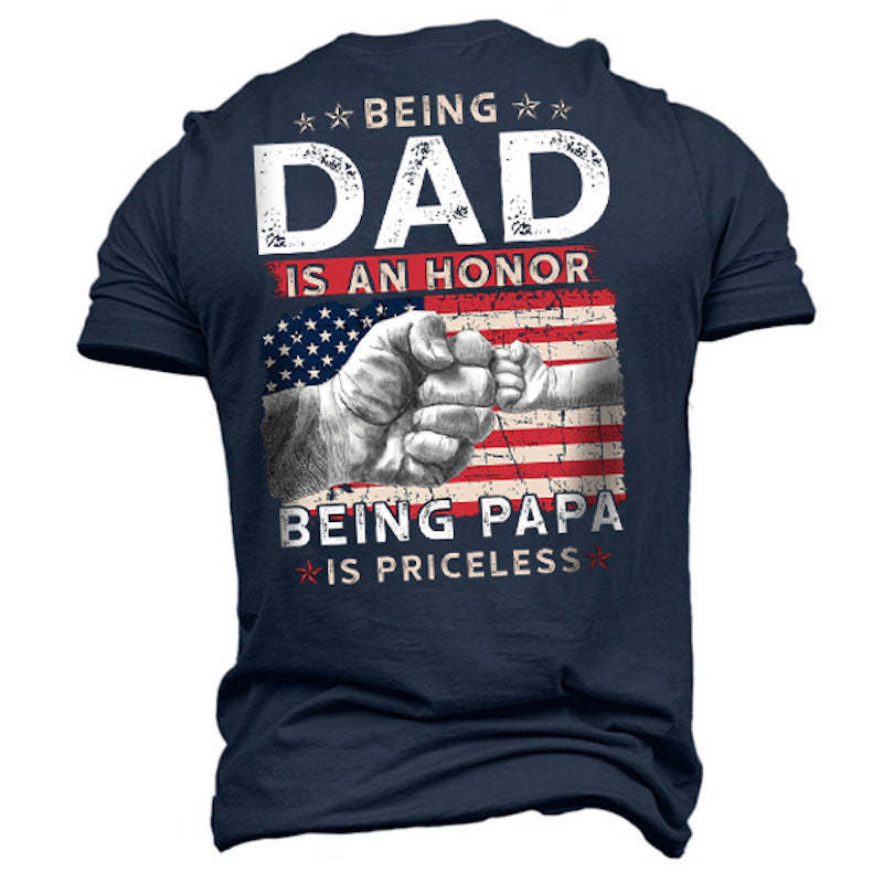 This American Flag Being Dad Men's T-Shirt is perfect for the American dad! It features a full-color American flag design on the front, complete with the words "Being Dad" in a bold, patriotic font. The fabric is soft and comfortable, making this t-shirt a great choice for a summer day spent grilling out or watching a baseball game.