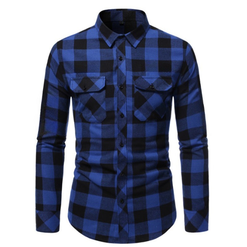 Feel comfortable and stylish with this fresh Casual frosted plaid dual-pocket long sleeve shirt made with premium-grade cotton, and tailored to fit just right! This may just be the missing piece to your summer and spring clothing collection!