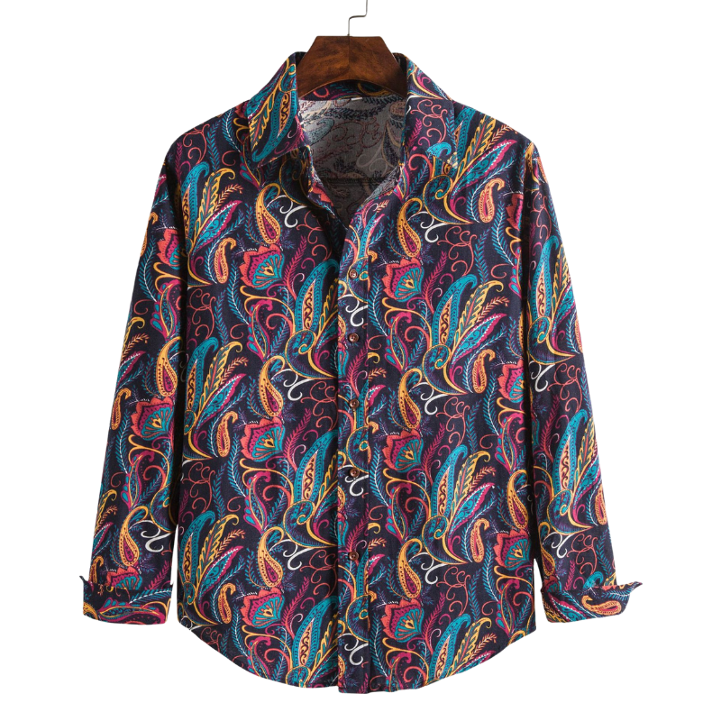 Casual Linen Floral Long Sleeve Shirt