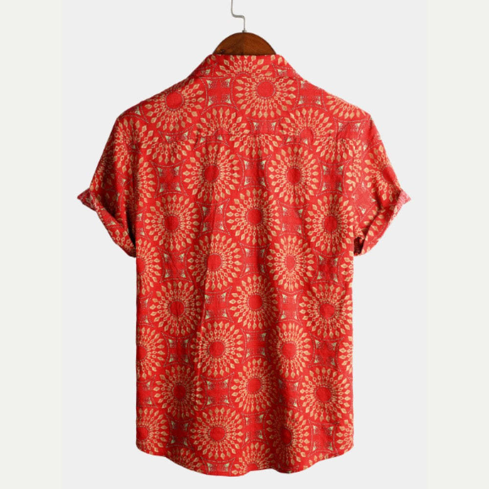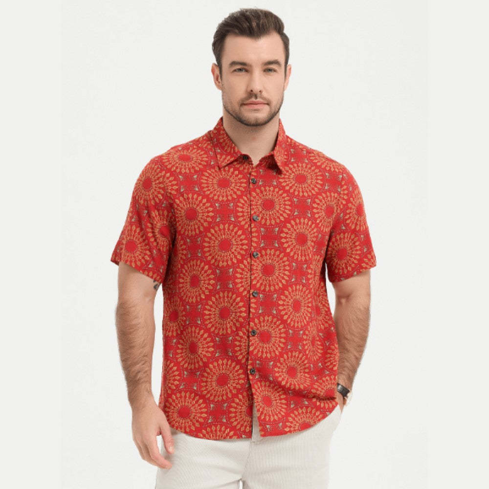Embrace the festive spirit with our Casual Retro Print Short Sleeve Shirt, expertly crafted from a blend of 70% cotton and 30% viscose for a soft feel. Perfect for family gatherings and holiday celebrations, this shirt combines comfort with seasonal charm.