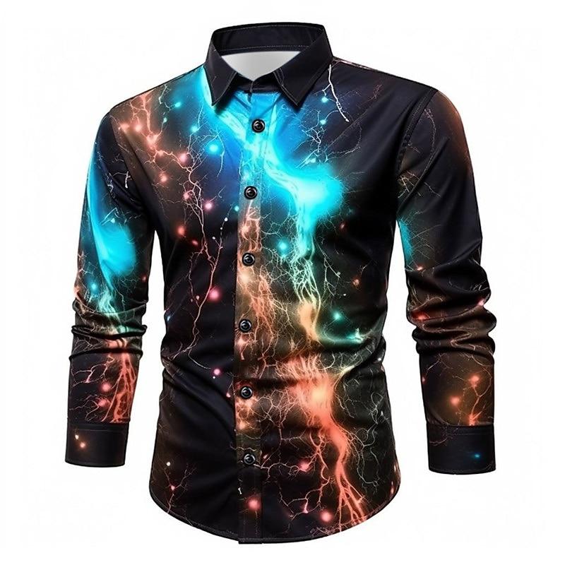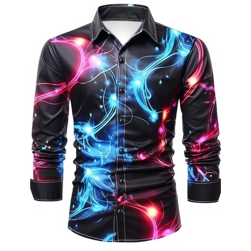 Step into the enchantment of the holiday season with our Christmas Abstract Color Print Stretch Shirt – a masterpiece of festive expression and contemporary elegance. This shirt seamlessly marries the joyful essence of Christmas with a modern aesthetic, featuring a captivating abstract color print that is sure to turn attention at every celebration. The flexibility of the fabric allows you to move freely, making it suitable for festive activities.