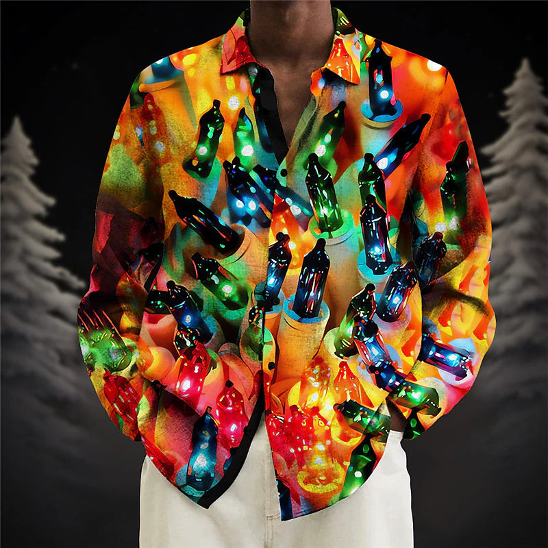 Brighten up your holiday wardrobe with our Christmas Lanterns Themed Long Sleeve Shirt. This men's shirt is the perfect choice for adding a touch of festive charm and illumination to your holiday attire. The Christmas Lanterns Themed print features a joyful design that showcases beautifully decorated lanterns, candles, and holiday decorations. Crafted from high-quality materials, this shirt offers both comfort and style, making it suitable for various holiday occasions and gatherings.