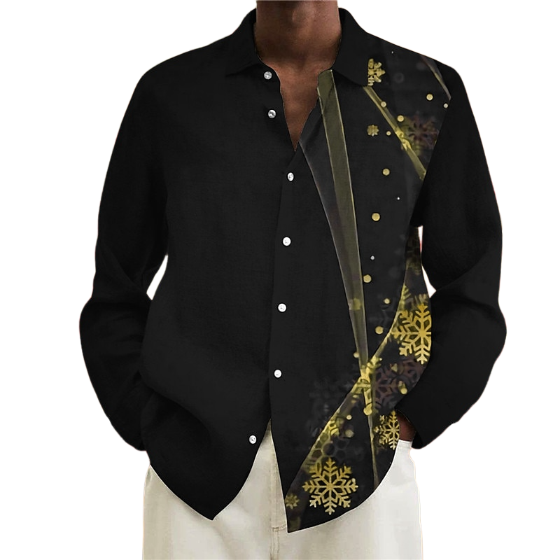 This luxurious Christmas Snowflake Print Button Down Shirt is a combination of style and comfort. Made from polyester fabric, it features a stylish turn-down neckline, a classic button-down design, and a winter-legacy snowflake print. This shirt is perfect for special holiday occasions. Upgrade your festive wardrobe!