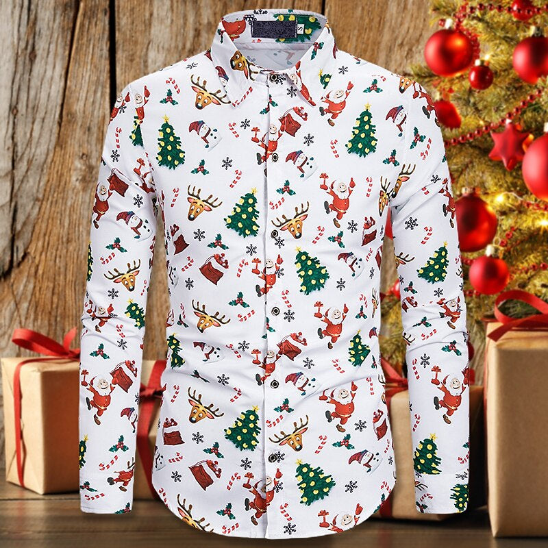 Celebrate the magic of the holiday season with our Christmas Snowflake Tree Print Shirt. This men's shirt is a festive masterpiece that captures the essence of Christmas with its joyful design. Adorned with intricate snowflakes and a beautifully decorated Christmas tree, this shirt is a visual delight that spreads holiday cheer wherever you go. It's like wearing the spirit of Christmas on your sleeve.