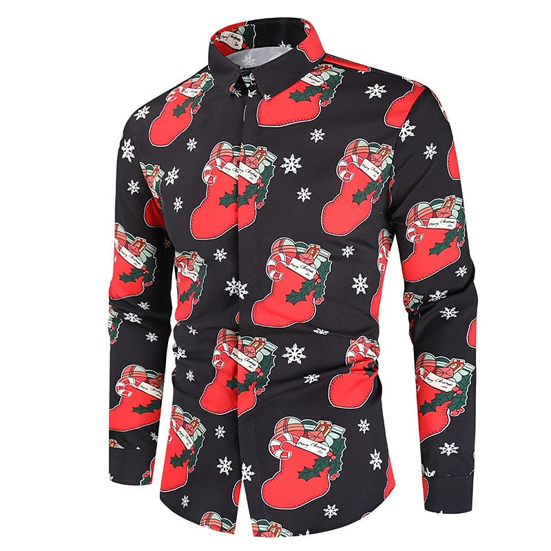 Bring the festive spirit to any occasion with our Christmas Themed Long Sleeve Turndown Shirts. This joyous piece showcases playful, festive designs, set against a backdrop of warm hues. The shirt's design is a nod to the holiday season, perfect for Christmas parties or as a whimsical addition to your holiday wardrobe.