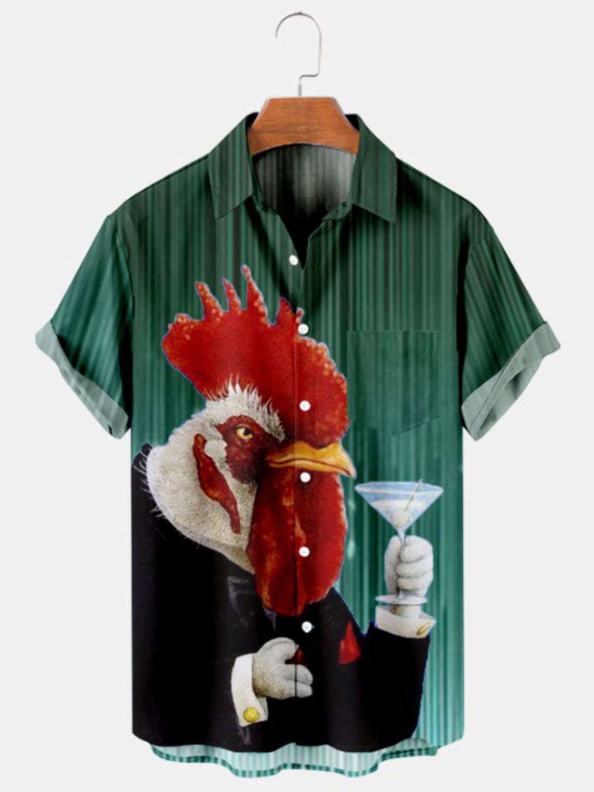 Make a statement with our Chicken Pocket Short Sleeve Shirt. Its distinctive pattern sets it apart from the crowd, and the non-stretchy fabric maintains a sleek, tailored fit. Perfect for casual occasions, this shirt with short sleeves combines fashion and comfort seamlessly. Step up your style game today!