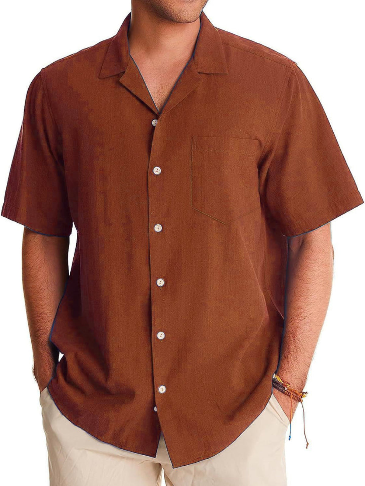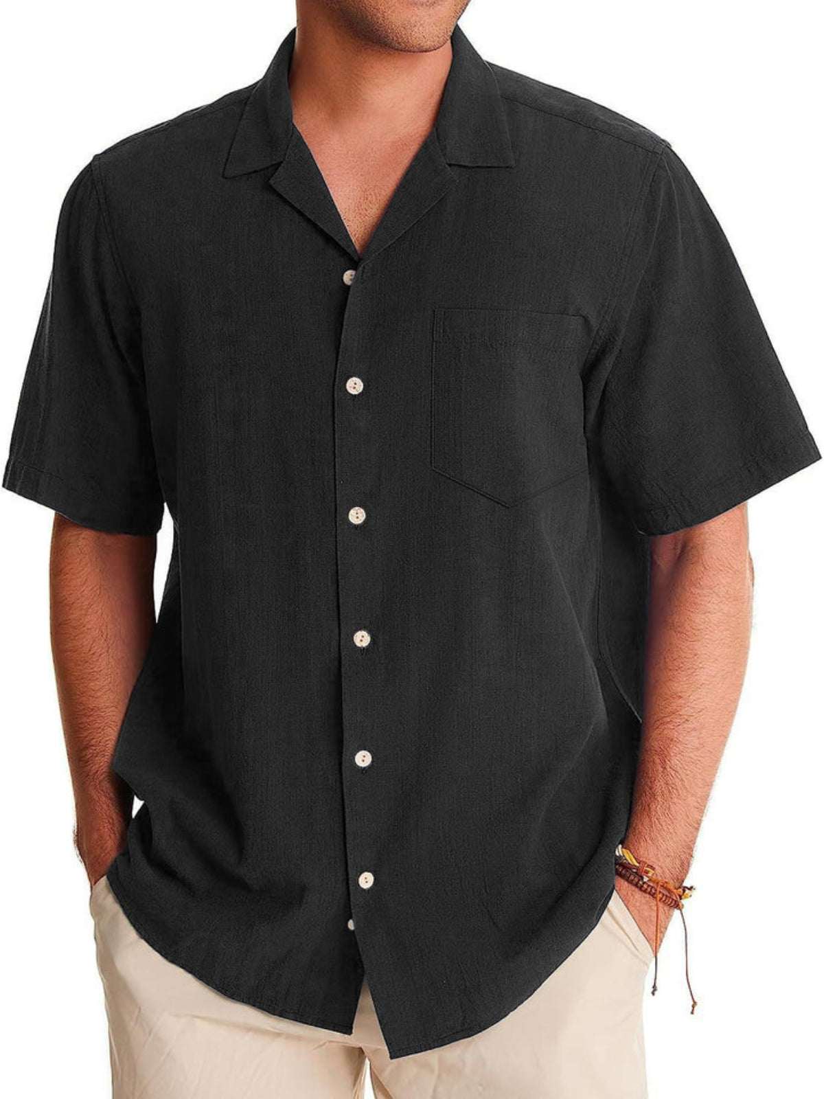 Dive into summer with the Cabin Collar Short Sleeve Shirt. Featuring a captivating Hawaii pattern and a non-stretchy fabric for a structured look, this shirt combines style and comfort effortlessly. Ideal for sunny days and balmy nights, it's a must-have addition to your warm-weather collection.