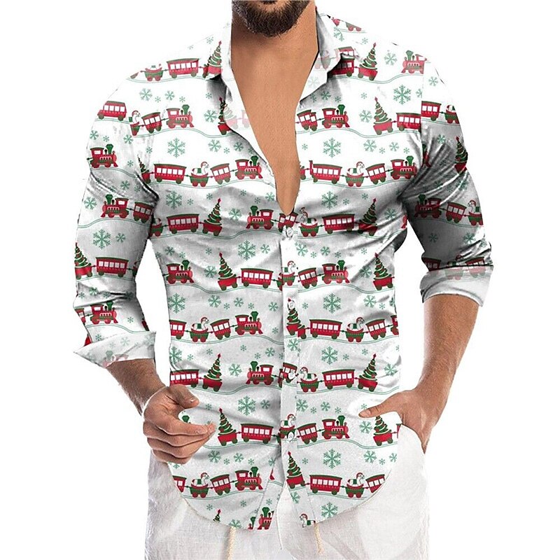 This Elk Christmas Tree Print Shirt is a timeless design crafted from 4-Way Stretch fabric for a comfortable fit and wearability, with a turn-down neckline and a button-down design. Featuring a delicate Christmas tree and elk print, this shirt is perfect for the holidays! It's a luxurious addition to your festive wardrobe.