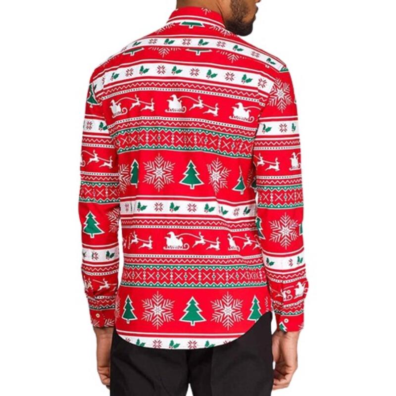 Wrap yourself in the warmth of winter fashion with our Festive Elk Print Button Down Shirt. The detailed elk design brings a touch of the outdoors to your outfit, making it an excellent choice for holiday celebrations or a cozy dinner with friends and family. The elegant elk pattern adds a hint of nature's beauty to your look, making it a sophisticated choice for festive occasions or a stylish evening out during the colder months.