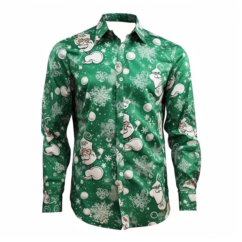 Celebrate the season in style with this Festive Season Holiday Printed Shirt. This shirt features a joyful print set against a seasonal green background, perfect for holiday gatherings or as a spirited office attire. The fabric ensures durability, making it a practical choice for wear during the holiday festivities.