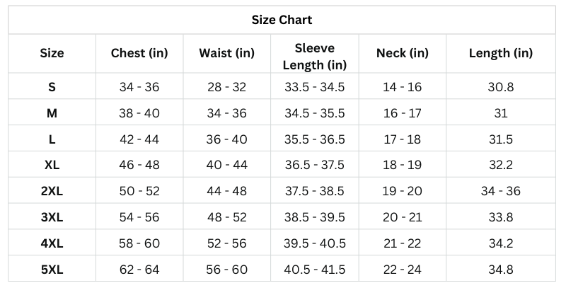 Size Chart (Inches):