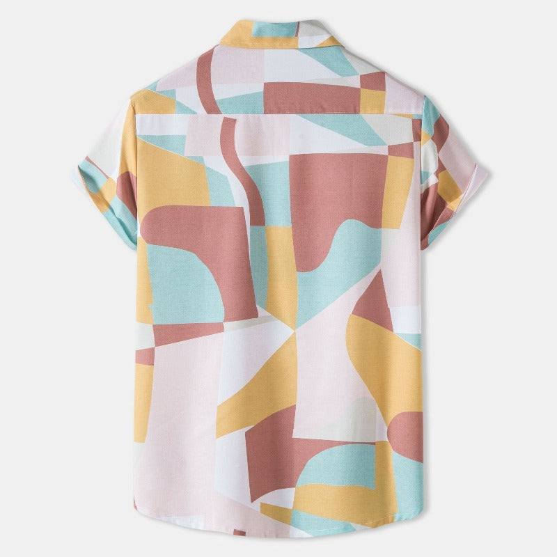 Feel comfortable and stylish with this fresh Form-Fitting Printed Short-Sleeved Shirt multicolored asymmetrical designs is made with premium-grade cotton and tailored to fit just right! This may just be the missing piece to your summer and spring clothing collection!