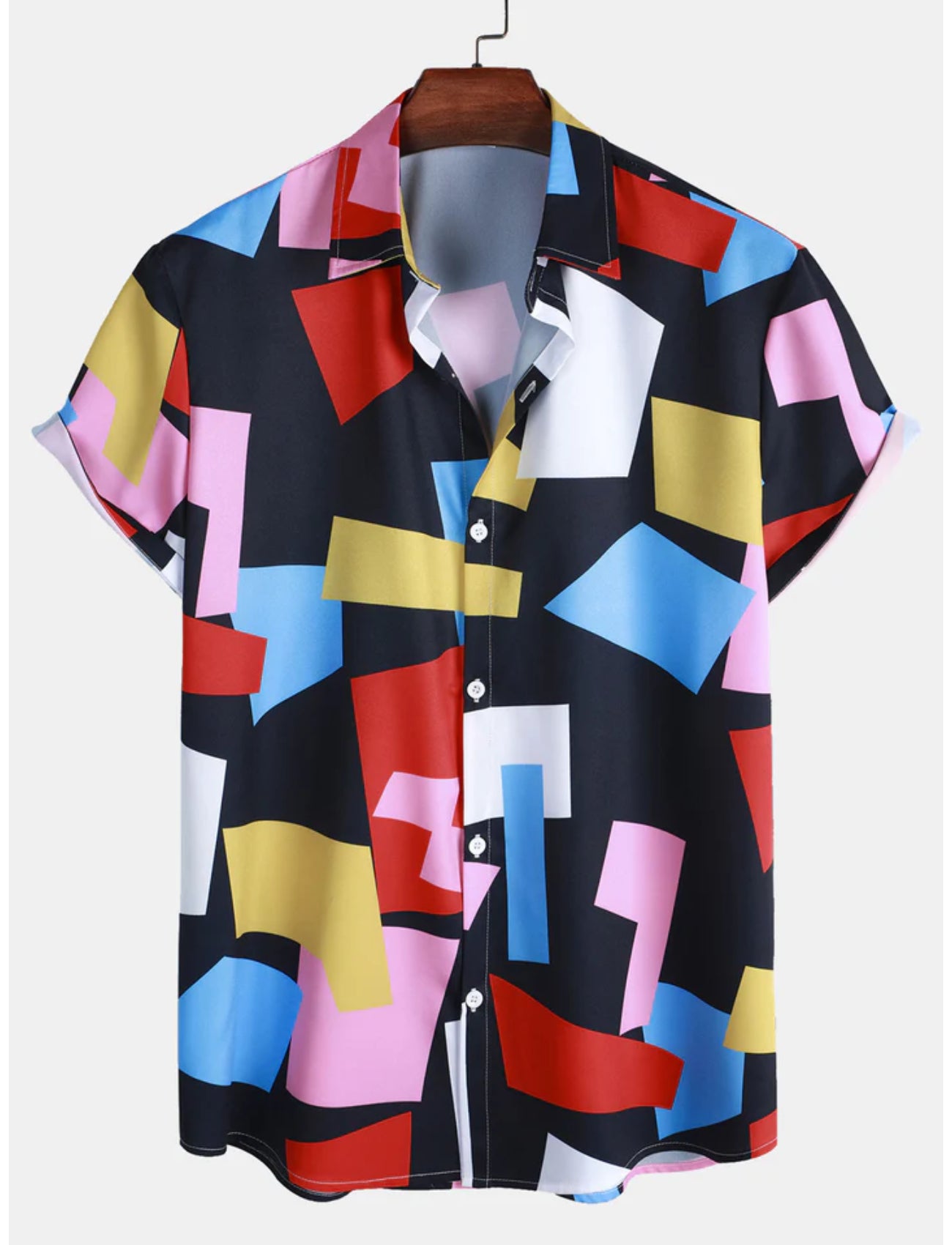 Introducing a Geometric Block Print Button Up Shirt, perfect for making a bold fashion statement. This shirt features a distinctive graphic print that adds a unique touch to any casual outfit, ideal for those who enjoy expressing their creativity through their wardrobe.