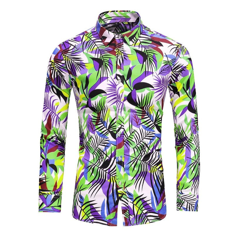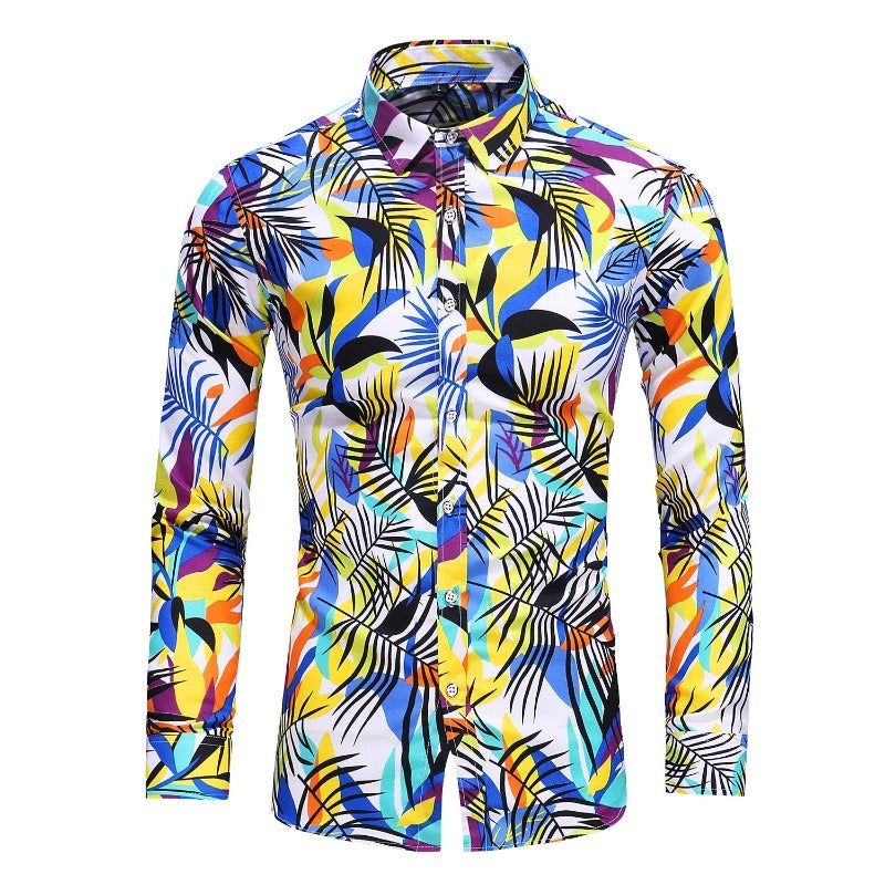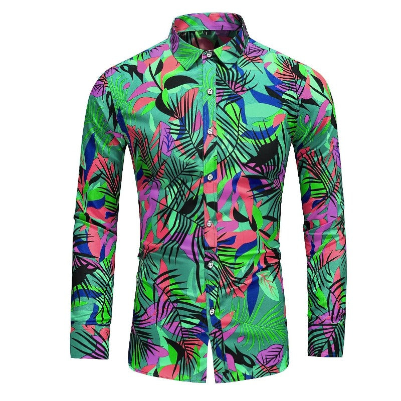 Improve your style with our Geometric Tropical Prints Long Sleeve Shirt. This men's shirt is the perfect choice for adding a touch of exotic flair and modern design to your wardrobe. The geometric tropical prints feature a captivating design that combines geometric patterns with tropical motifs, creating a visually stunning and unique look. Crafted from high-quality materials, this shirt offers both comfort and style, making it suitable for various occasions, from casual outings to beach vacations.