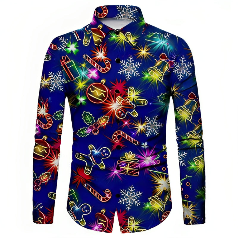 Indulge in festive cheer with our Gingerbread Christmas Pattern Turndown Shirt. With charming gingerbread motifs and holiday accents, this shirt is perfect for seasonal celebrations. Its classic turndown collar adds sophistication, making it a choice for holiday parties or family gatherings.