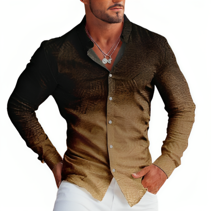 Step into style with our Gradient Pattern Long Sleeve Shirt, a fashion-forward piece that melds contemporary design with classic elegance. This shirt features a unique gradient effect. The textured pattern adds depth and sophistication to the piece, while the fabric offers both comfort and durability.