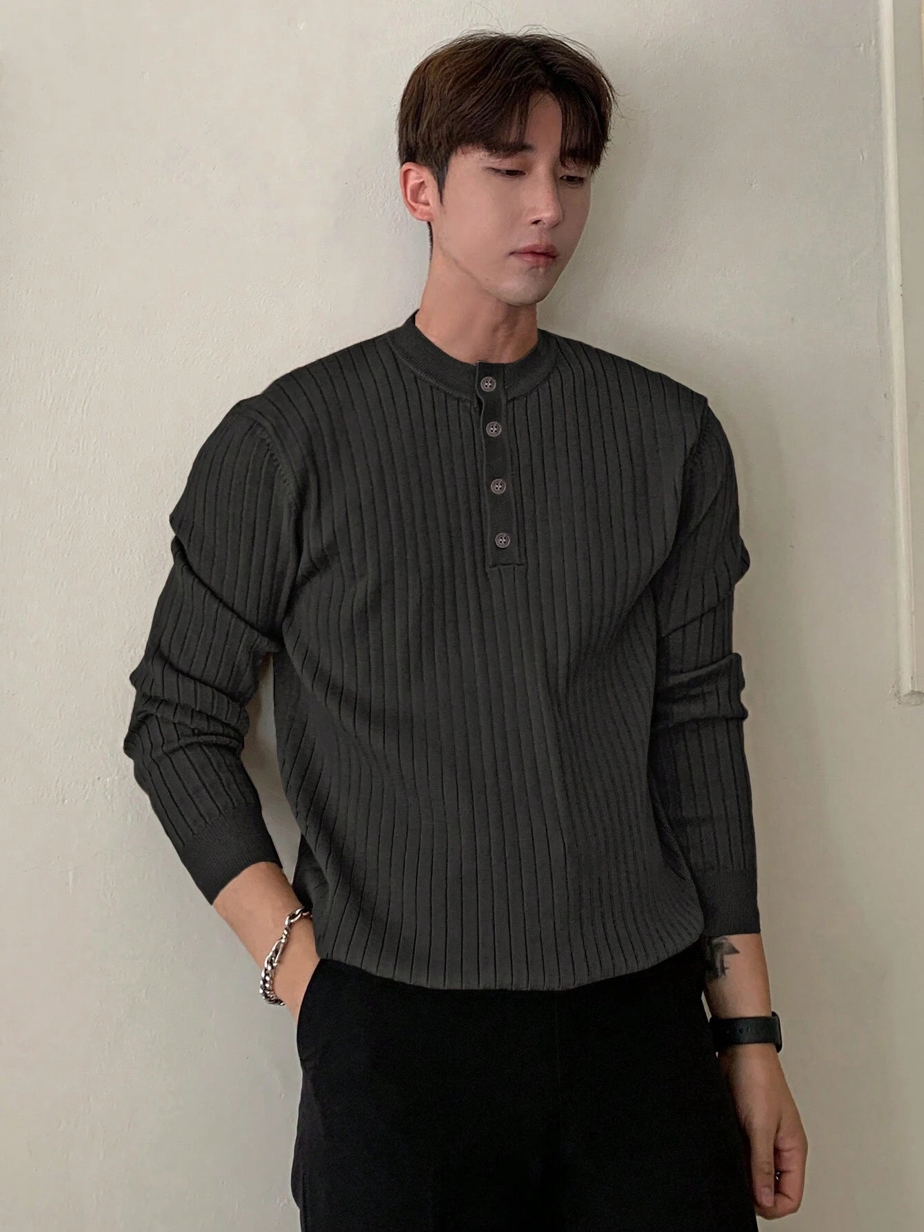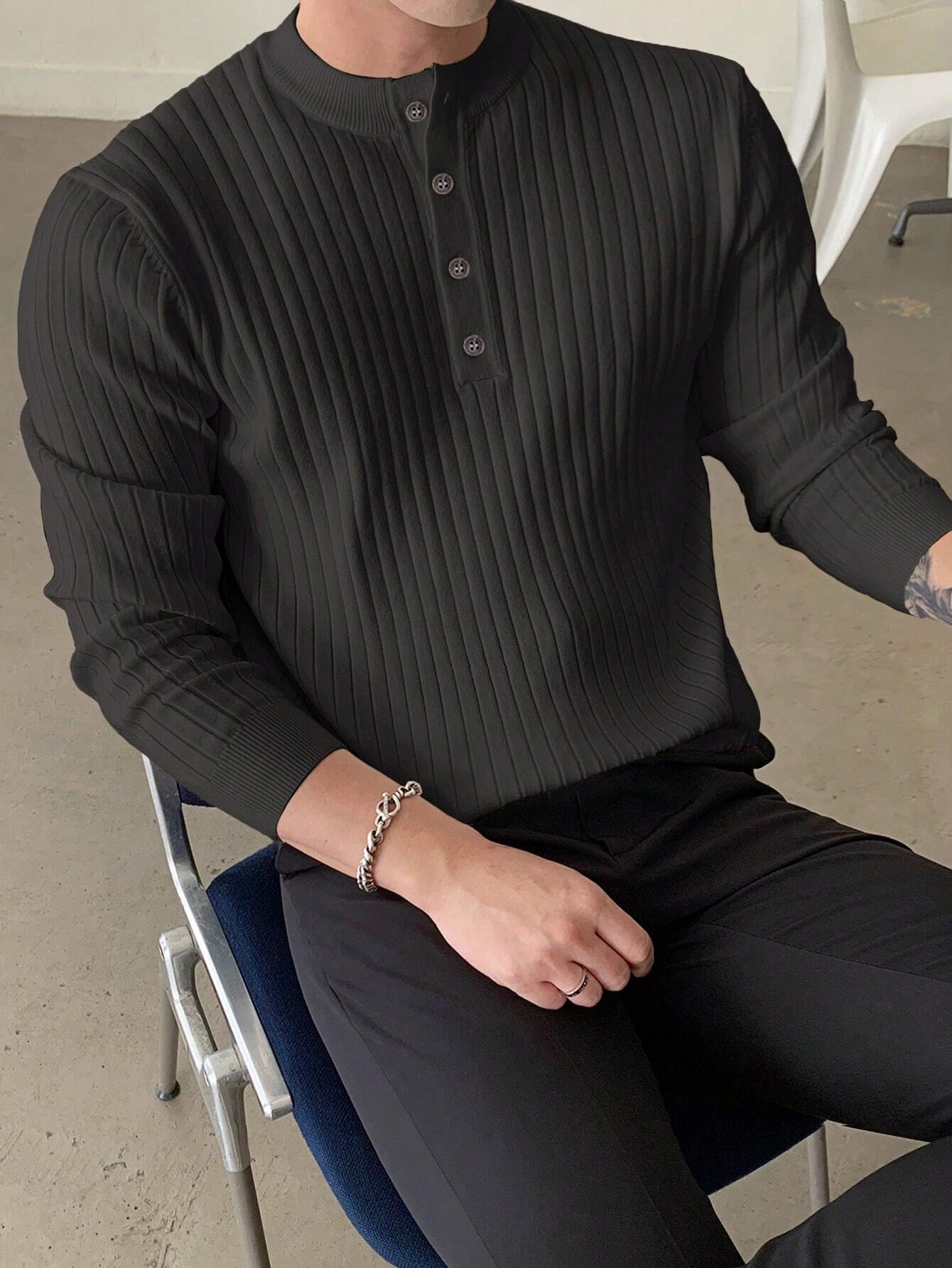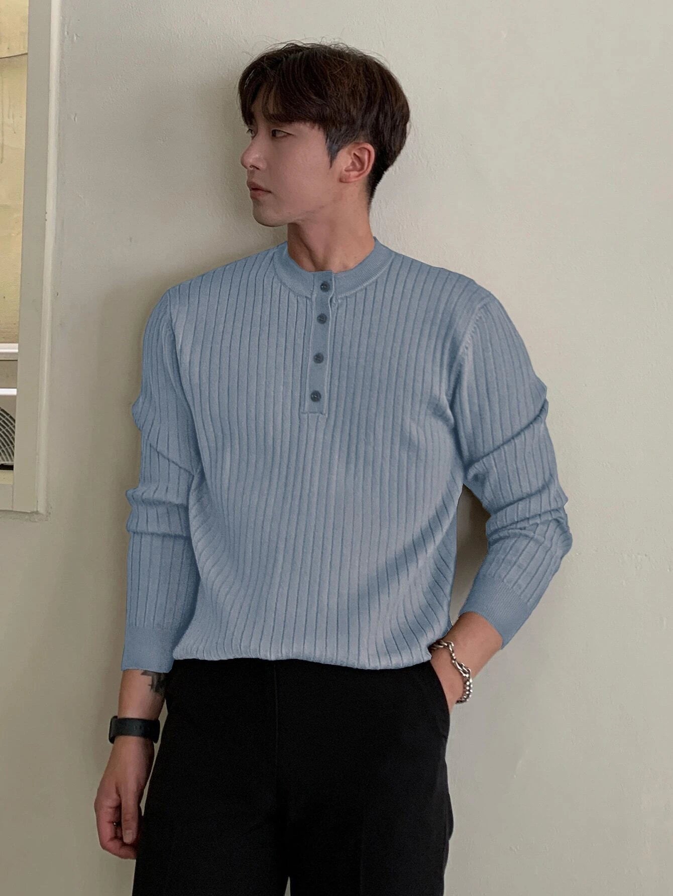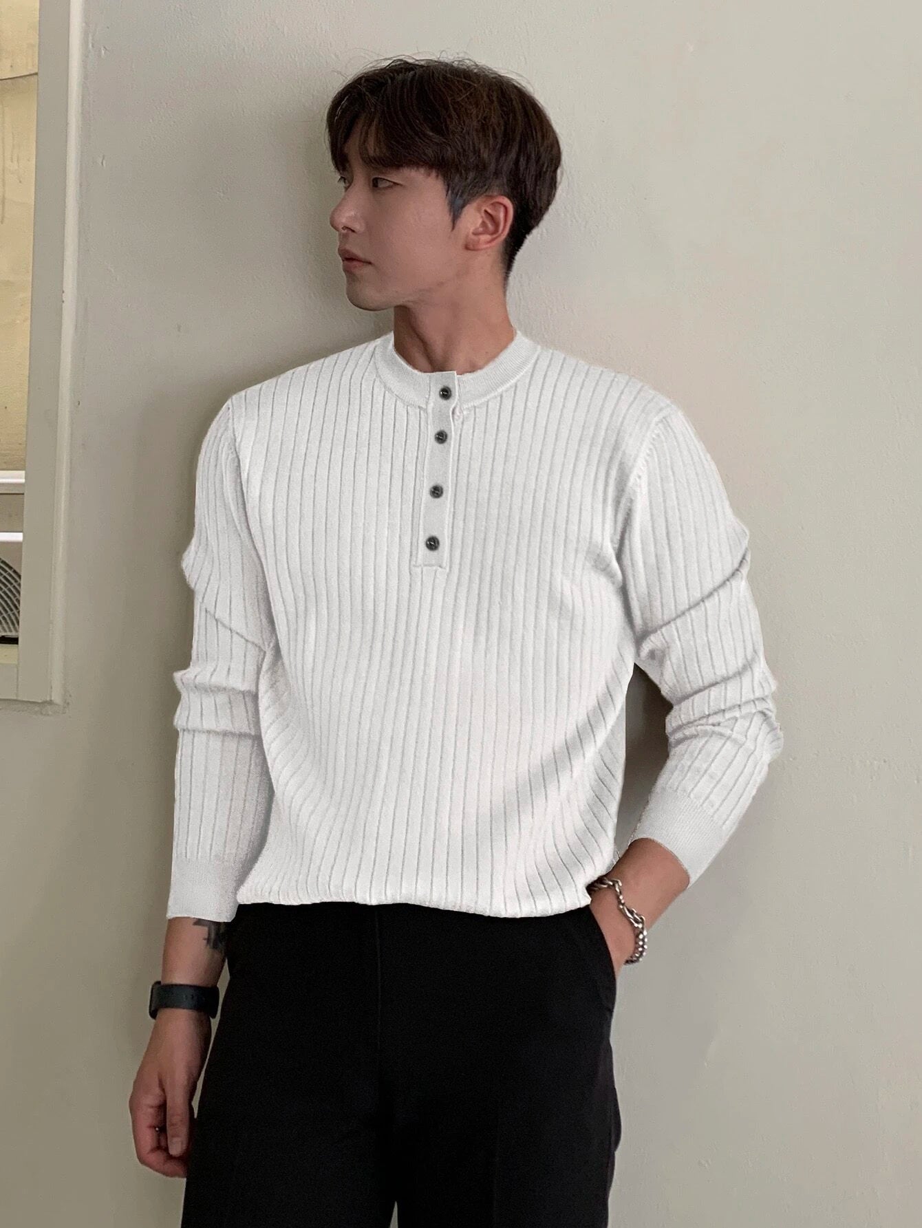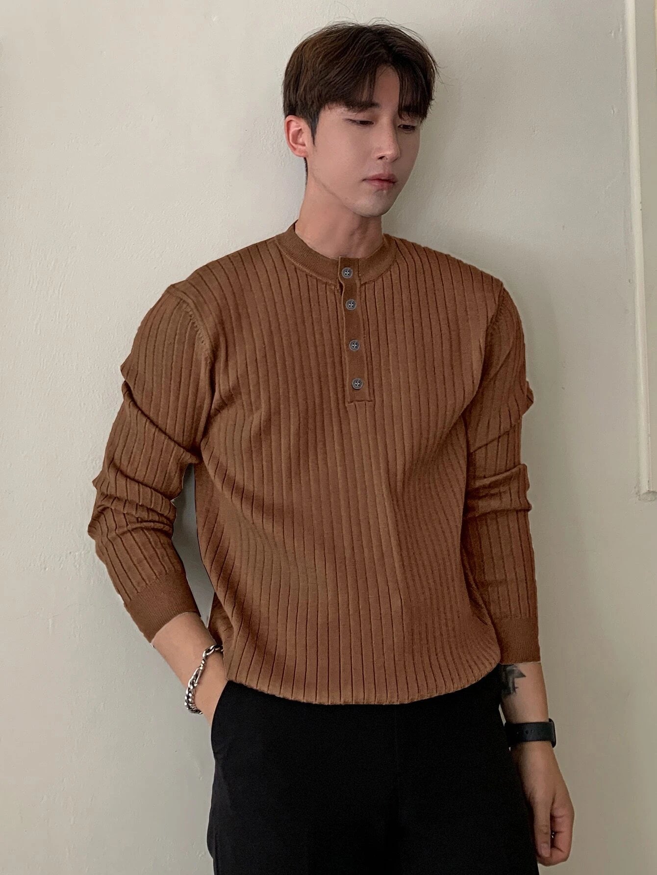 Discover the perfect blend of warmth and style with our Half Button Ribbed Knit Sweater. The high-quality knit fabric ensures lasting comfort, while the half-button detailing adds a touch of refinement. Effortlessly pair it with any outfit for an instant upgrade to your winter look.