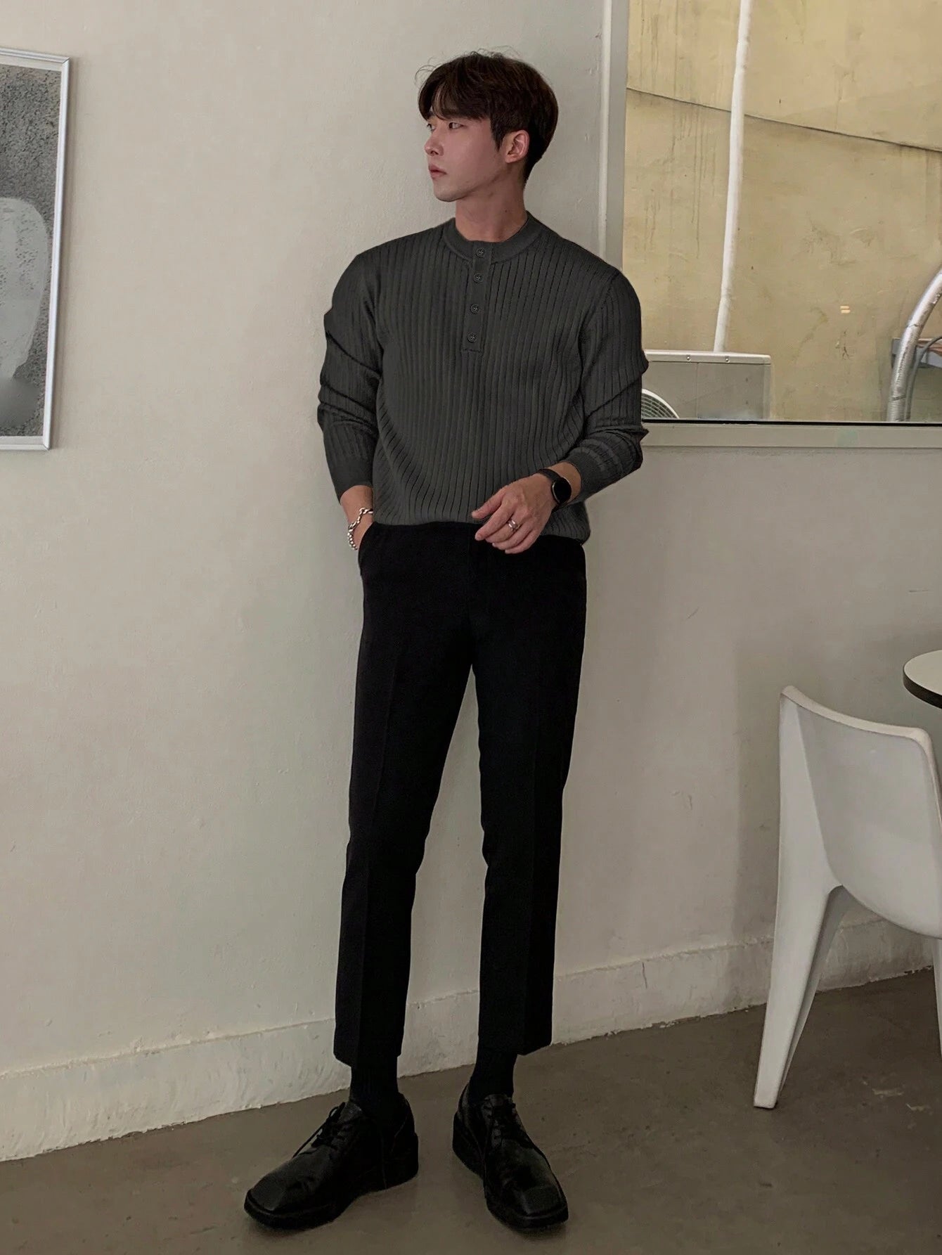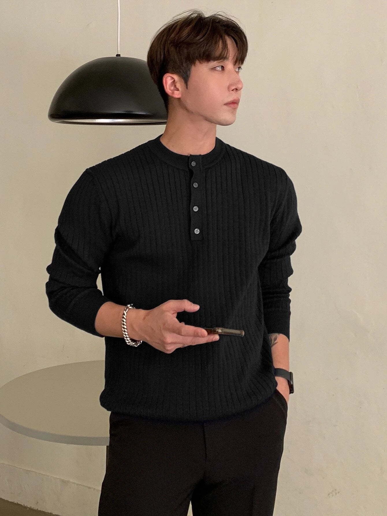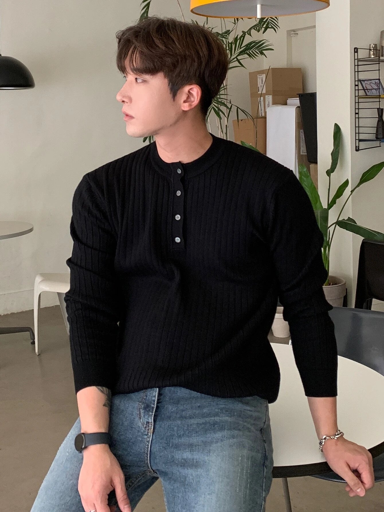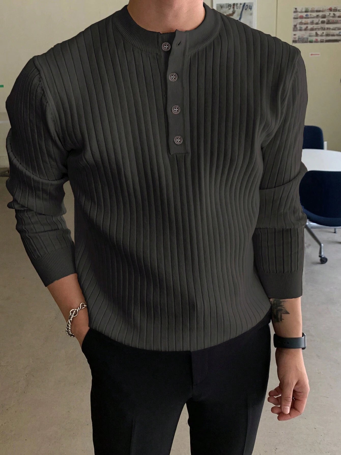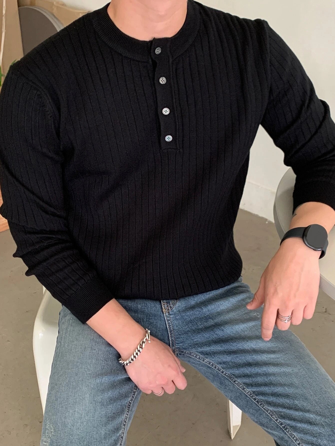 Discover the perfect blend of warmth and style with our Half Button Ribbed Knit Sweater. The high-quality knit fabric ensures lasting comfort, while the half-button detailing adds a touch of refinement. Effortlessly pair it with any outfit for an instant upgrade to your winter look.