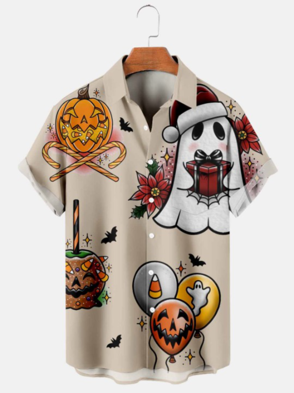 Halloween Elements Pattern Print Short Sleeve Shirt