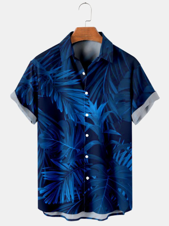 Stand out in style with our Hawaiian Palm Leaf Print Short Sleeve Shirt. The bold neon palm leaf print sets a tropical tone, making it a great choice for beach outings and summer gatherings. Add a pop of color to your wardrobe and let your vibrant personality shine. The vibrant blue color is all that you need on a beach day outing.