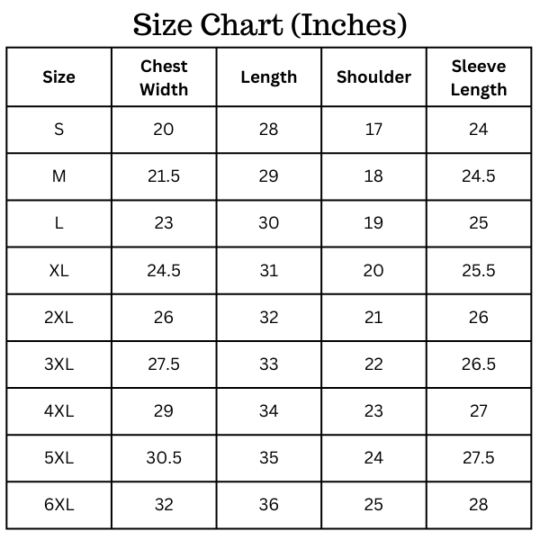 Size Chart(inches):