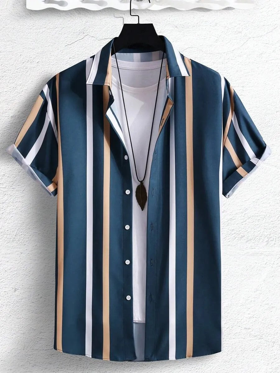 Elevate your style effortlessly with our Homme Random Striped Print Shirt. Crafted with high-quality materials, its striking random striped pattern adds a unique touch to any outfit. Whether it's for the office or a weekend gathering, this versatile shirt ensures you look sophisticated and comfortable all day long. With a tailored fit and impeccable craftsmanship, it's the perfect blend of fashion-forward design and comfort. Upgrade your wardrobe with this standout piece today.