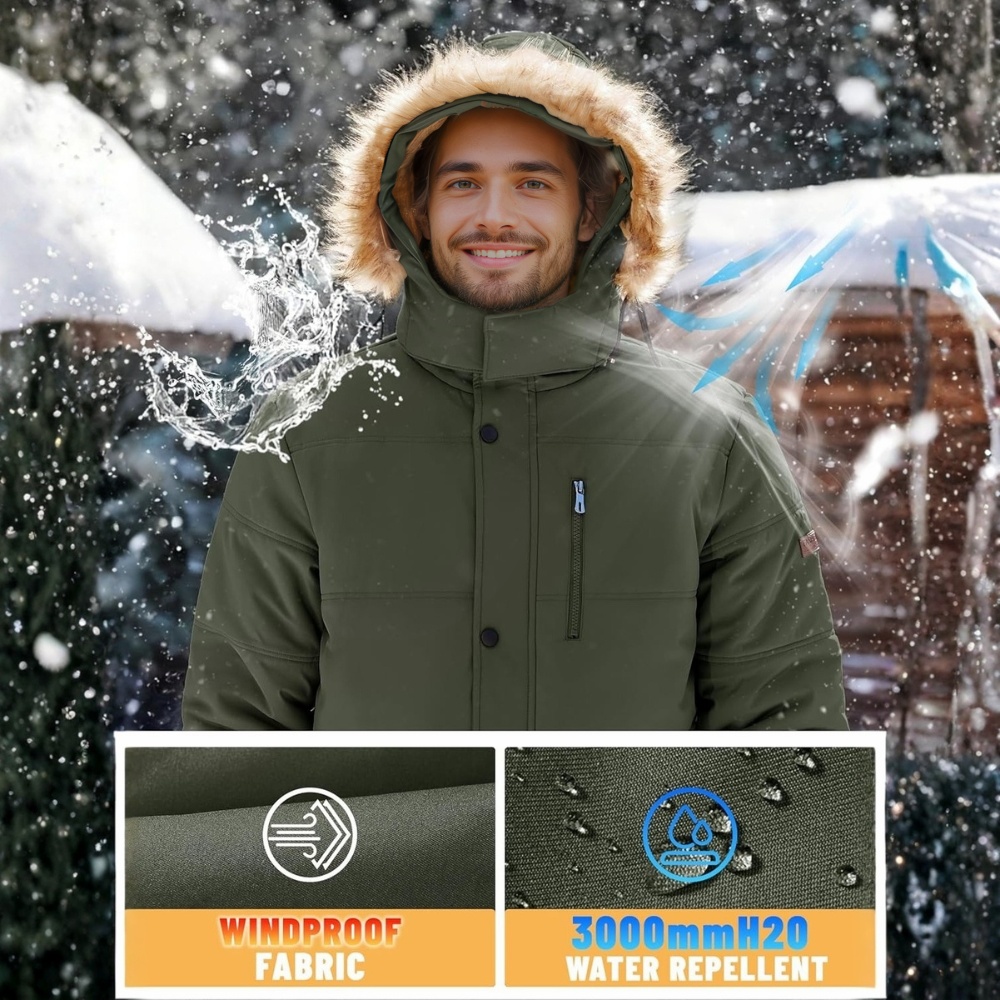 The Hooded Parka With Pockets For Men stands out because it combines performance and everyday practicality. It provides warmth without excessive bulk, making it easier to move comfortably. The thoughtful pocket placement allows convenient storage for essentials like phone, wallet, and gloves.
