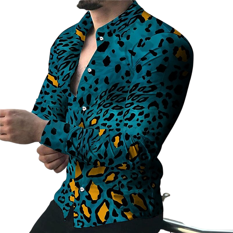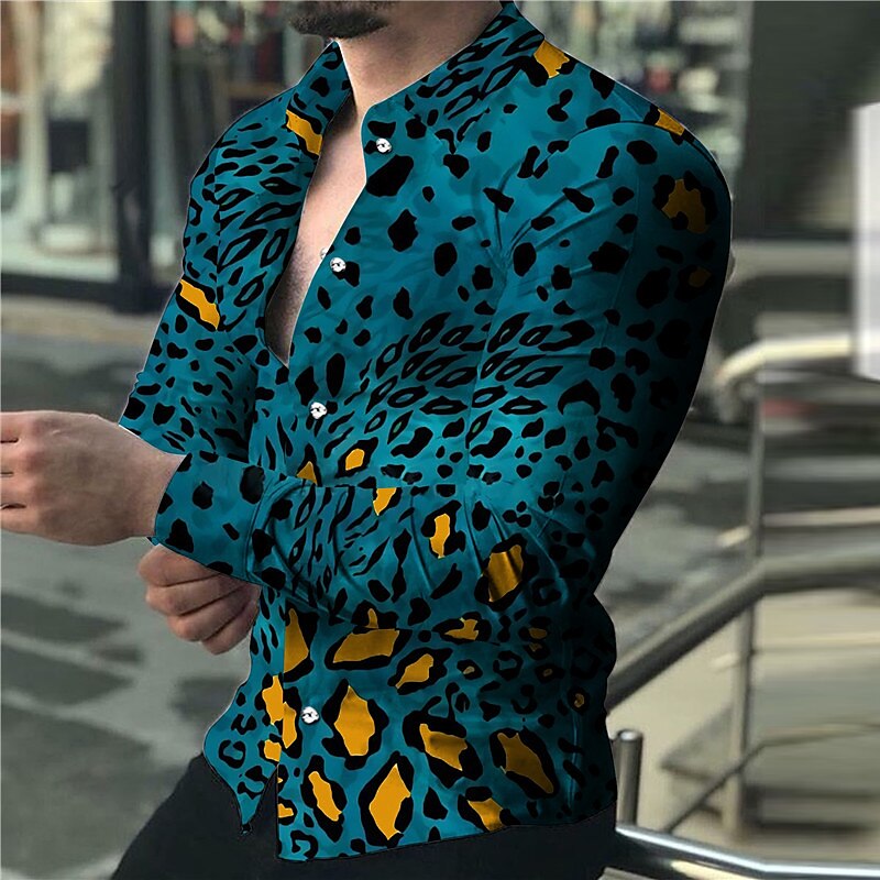 Roar into style with our Leopard Graphic Print Long Sleeve Shirt. This men's shirt is the perfect choice for adding a touch of wild sophistication to your wardrobe. The leopard graphic print features a bold and striking design that captures the fierce beauty of leopard spots and patterns. Crafted from high-quality materials, this shirt offers both comfort and style, making it suitable for various occasions, from casual outings to evening events.