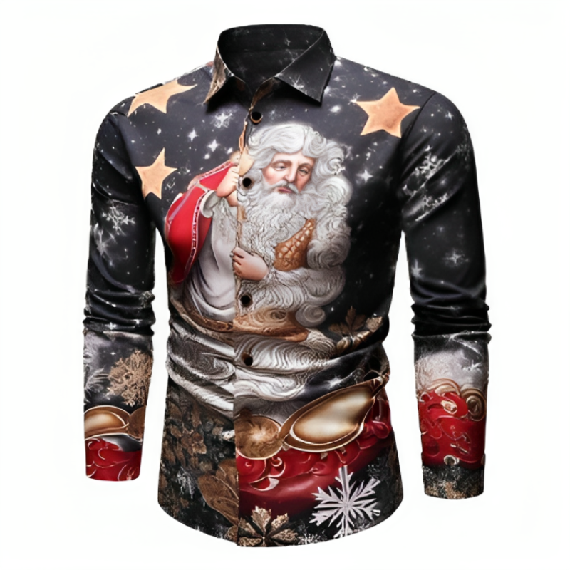 Introducing a luxurious winter staple-Long Sleeve Santa Claus Patterned Shirt features a vibrant Santa Claus print on 4-way stretch fabric. With a stylish turndown neckline and button-down design, this sophisticated piece will add effortless style to your festive wardrobe. Perfect for the Christmas festivities!