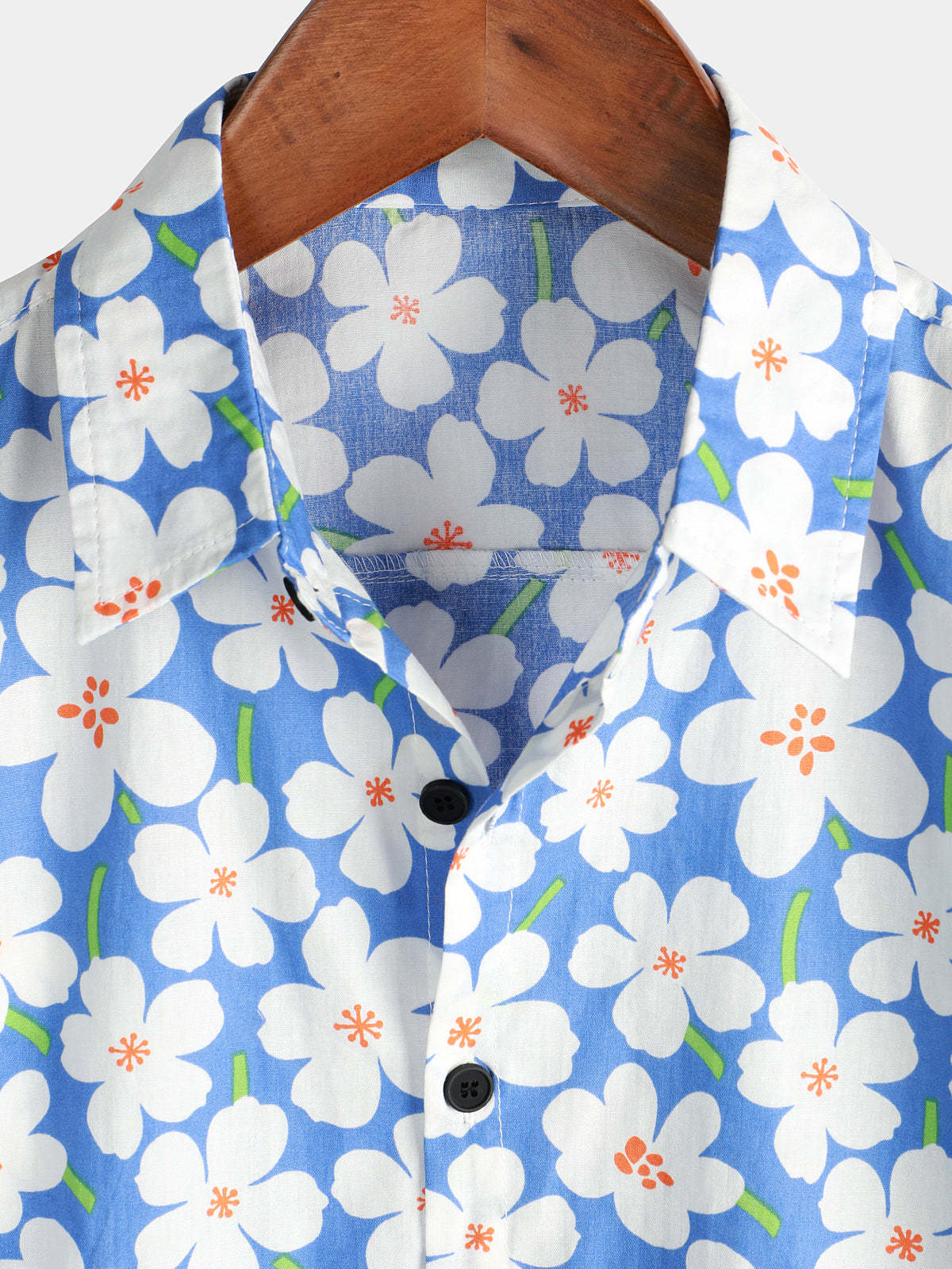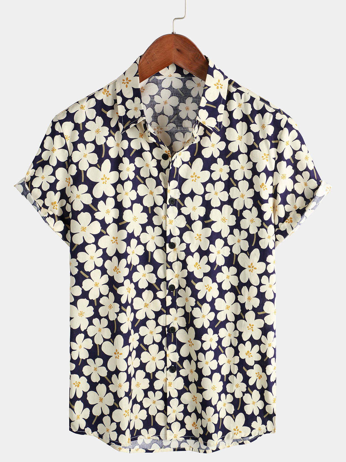 Upgrade your summer wardrobe with these Men's Summer Floral Print Short Sleeve Shirts. Made from 100% cotton, these shirts offer lightweight comfort, making them perfect for hot weather and various occasions.