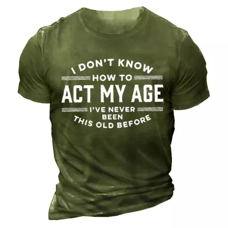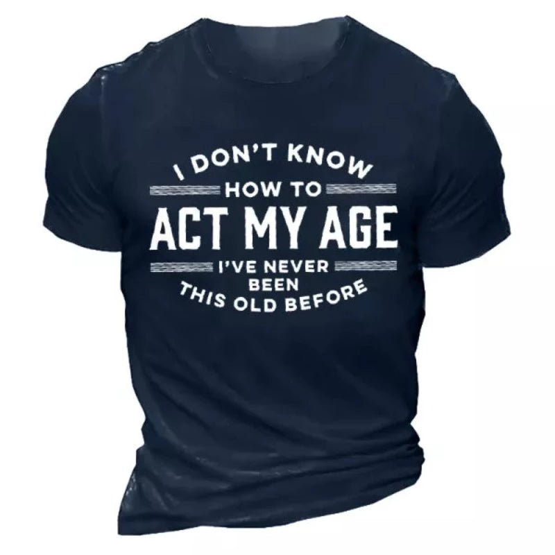 This t-shirt is made from soft and durable materials. This Men's Act My Age Half Sleeves T-Shirt is a great addition to your wardrobe. It's ideal for any occasion, from casual wear to parties. The half sleeves will keep you cool in the summer heat, while the long sleeve ensures that you will always feel protected. With a casual fit, you can wear it on its own or over a pair of jeans for an easy everyday look.