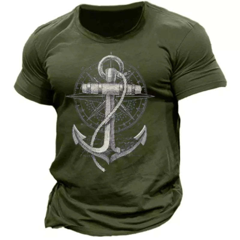 This Men's Anchor Print T-Shirt runs true to size and is very comfortable. It's perfect for the warmer days of summer or any time you are just in need of a t-shirt that compliments your wardrobe.